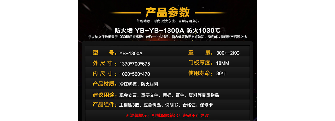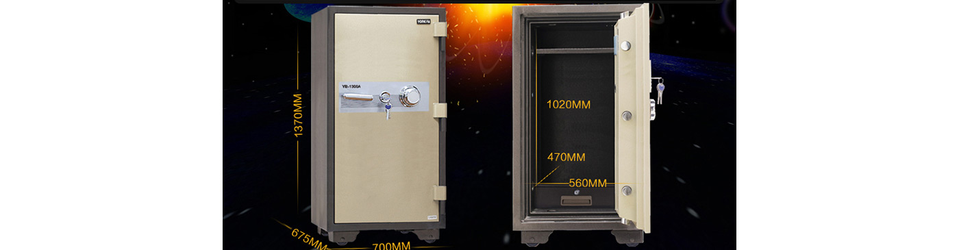 永發機械防火柜YB-1300A尺寸說明:1370高*700寬*675深mm(含底座) 重量:300kg