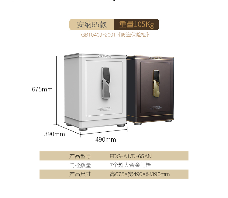 卡嘜安納指紋+電子密碼系列3C認(rèn)證保險(xiǎn)箱D-65AN 尺寸說明:650高*485寬*390深mm(含底座) 重量:100kg